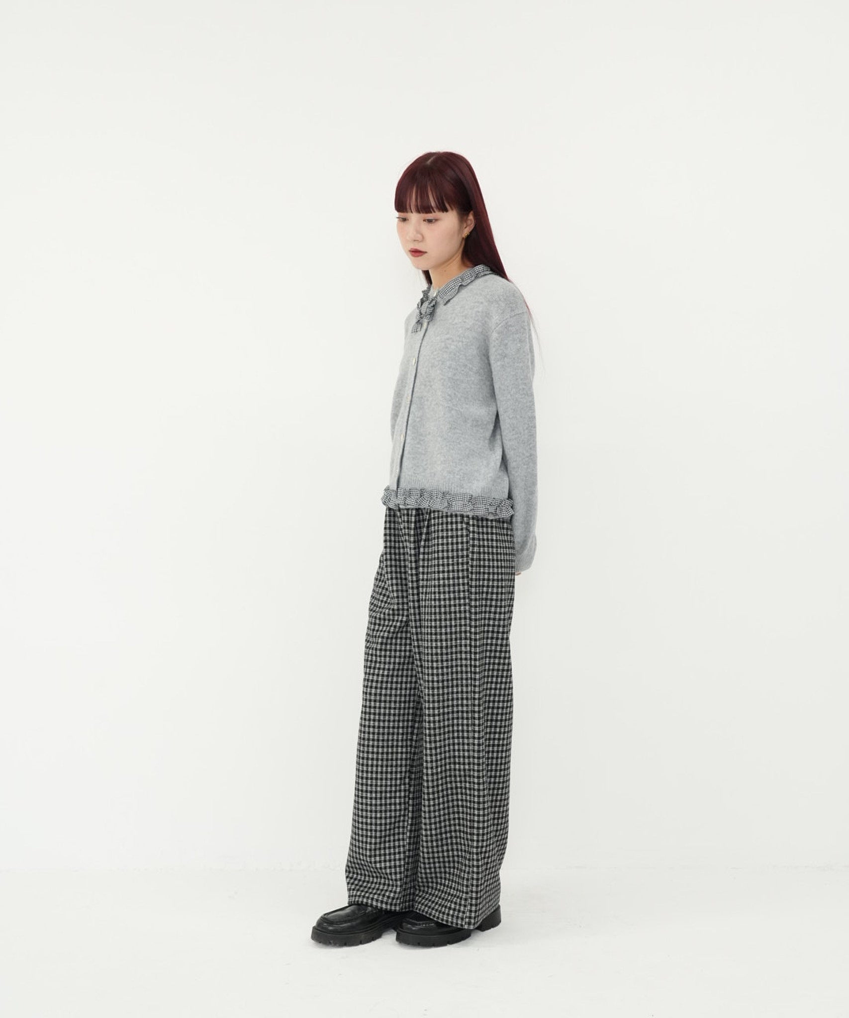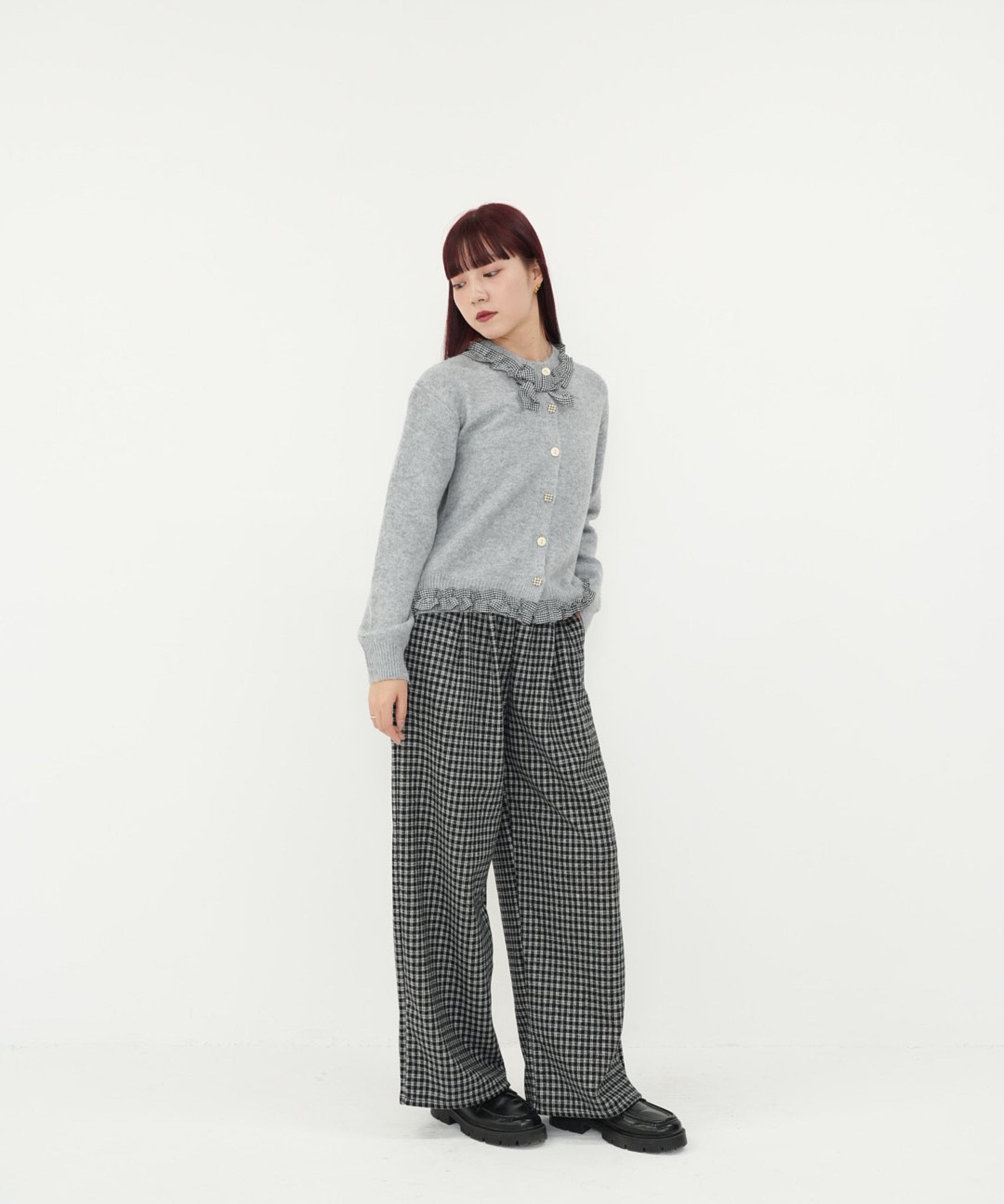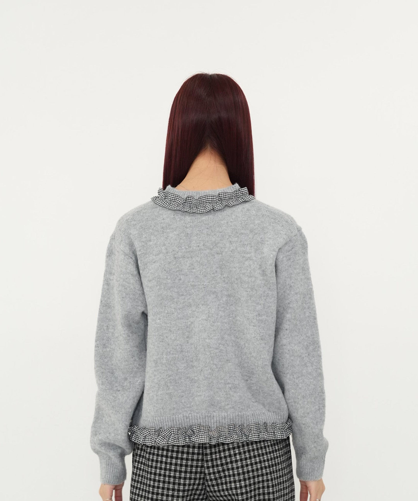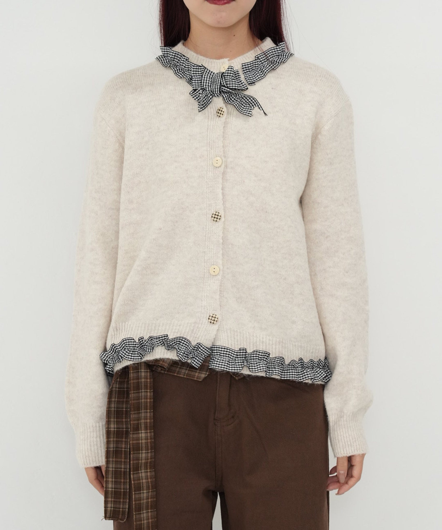 gingham frill knit cardigan
