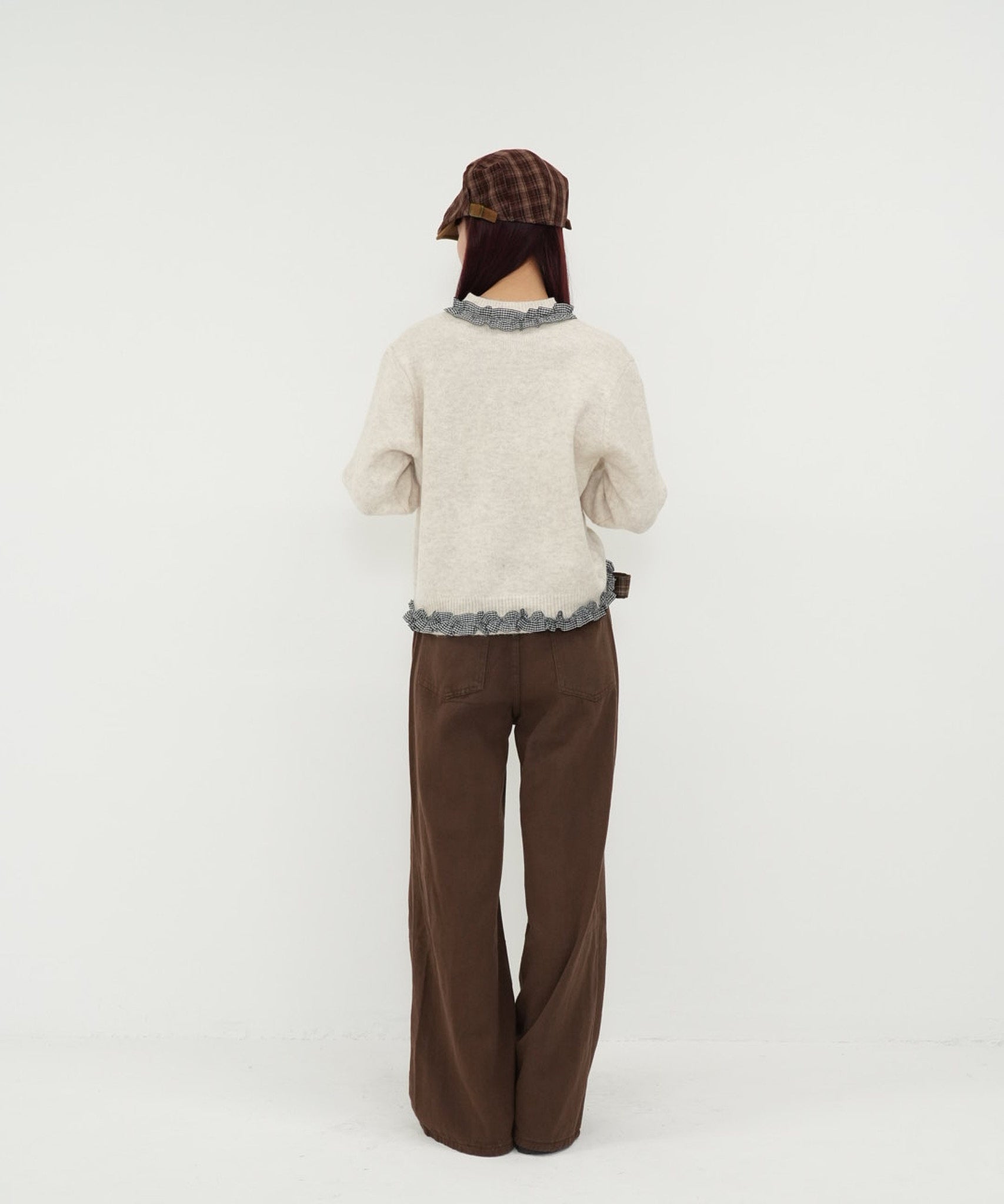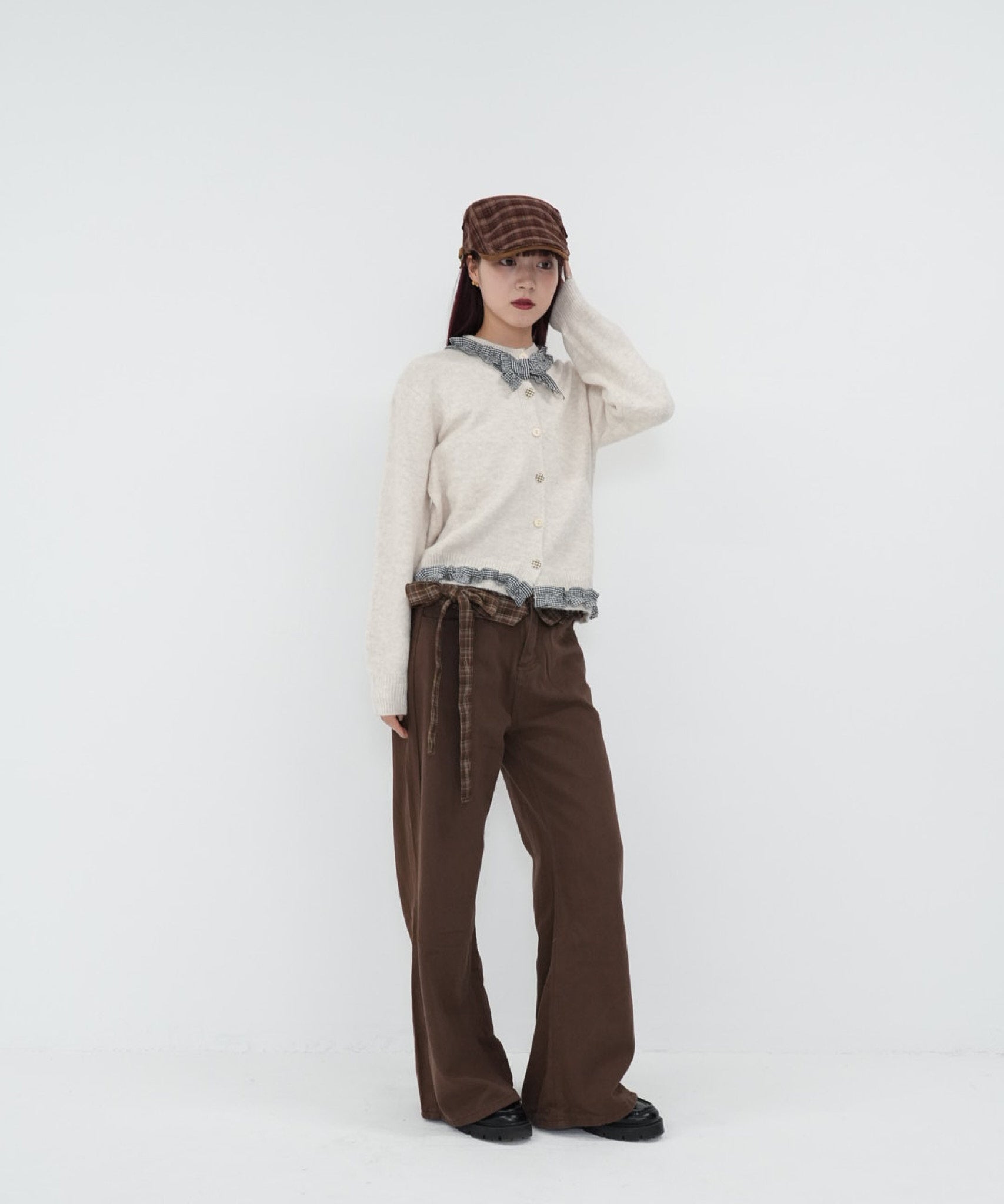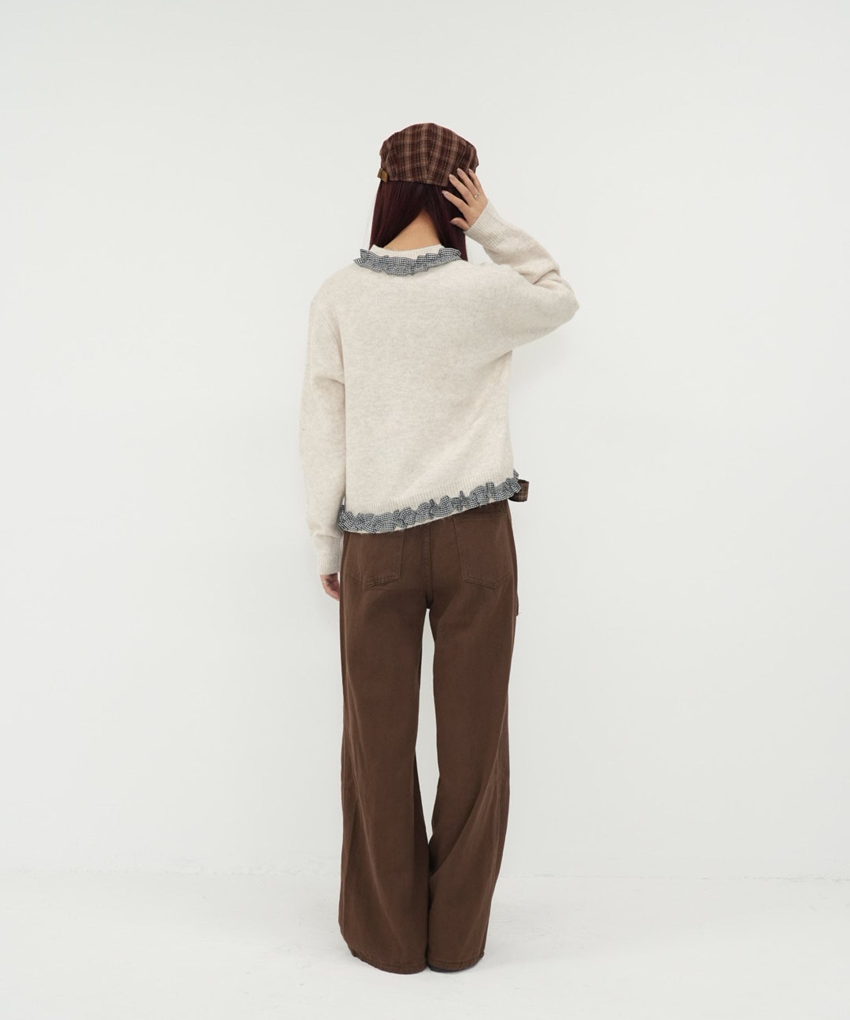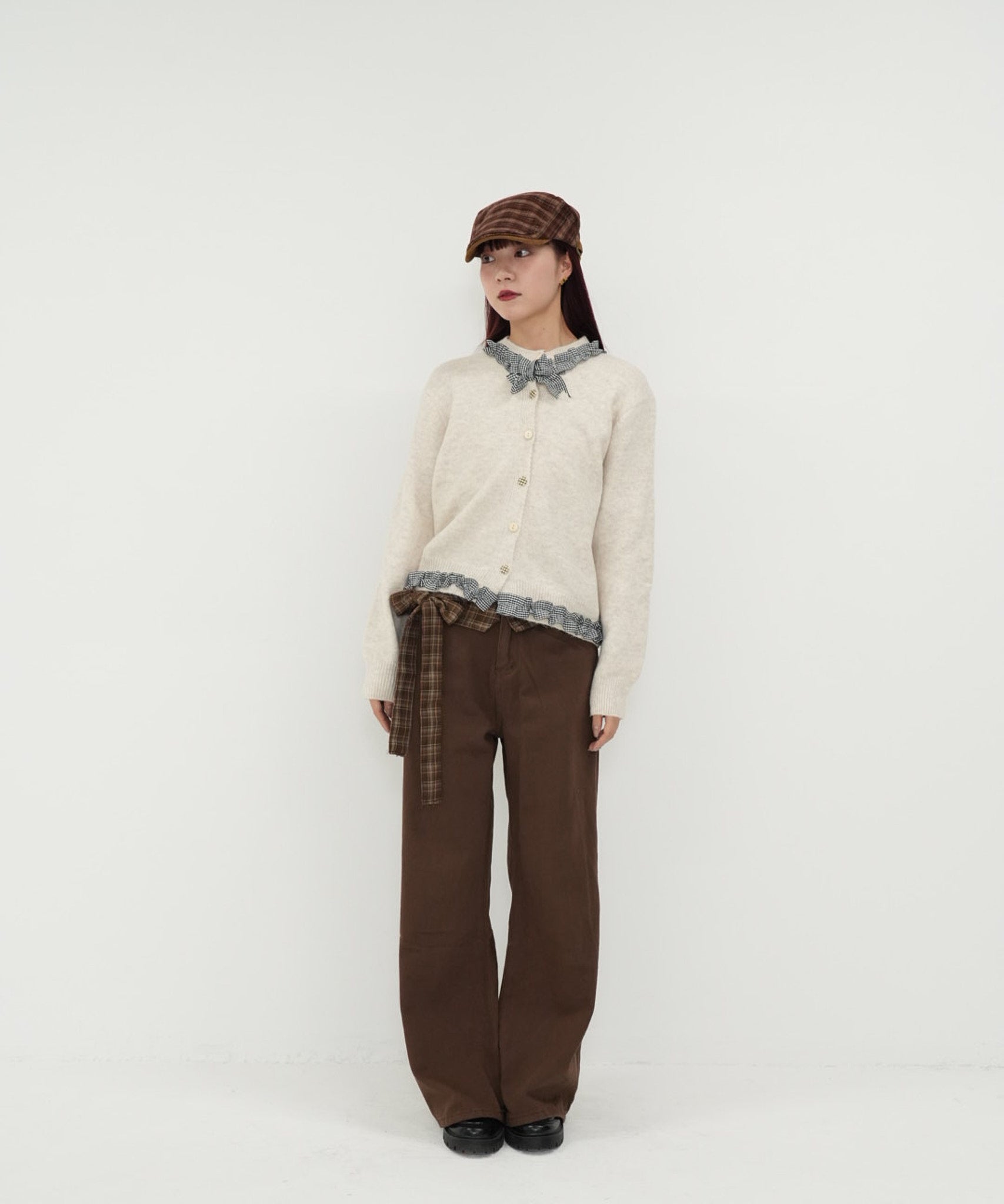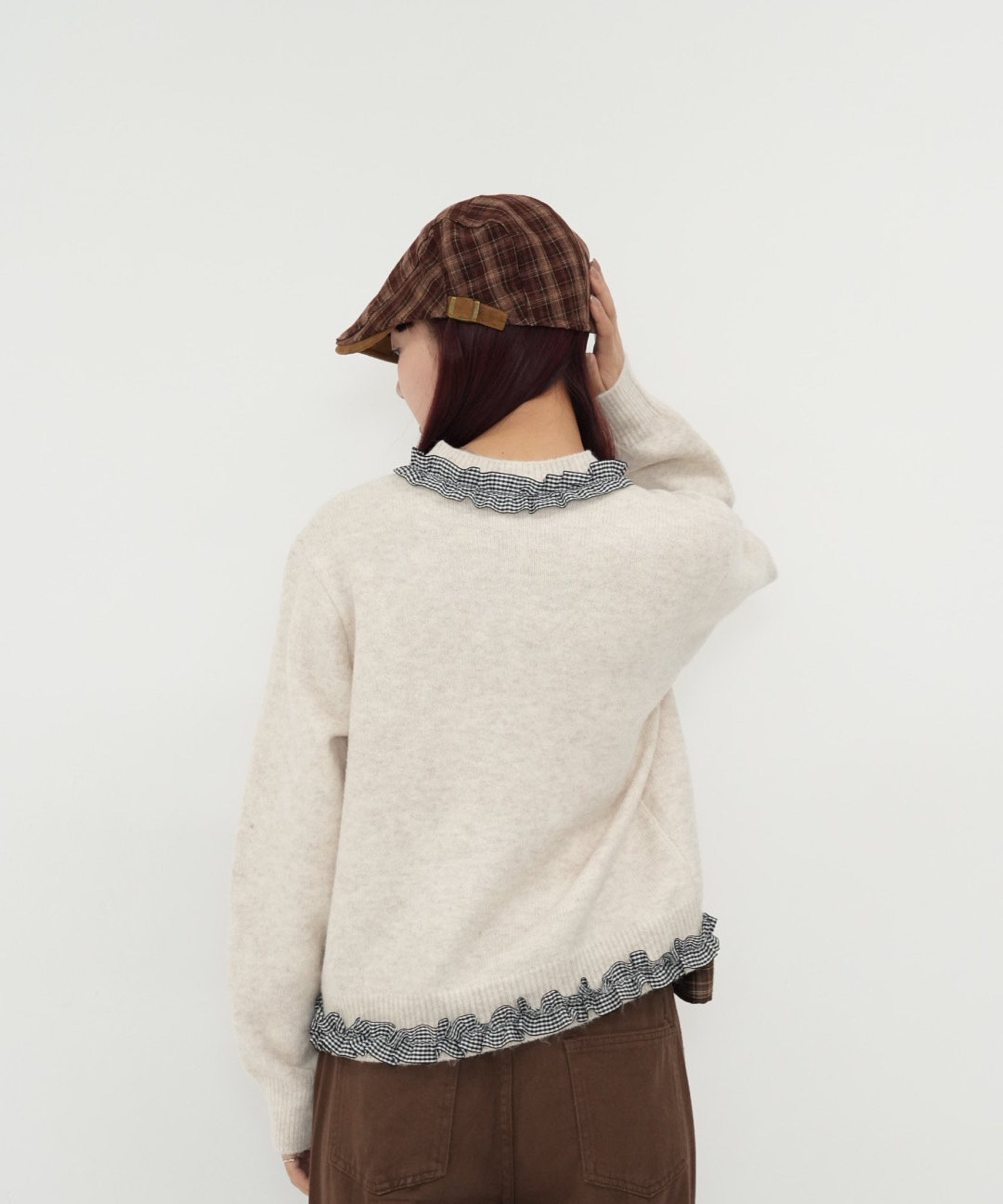 gingham frill knit cardigan