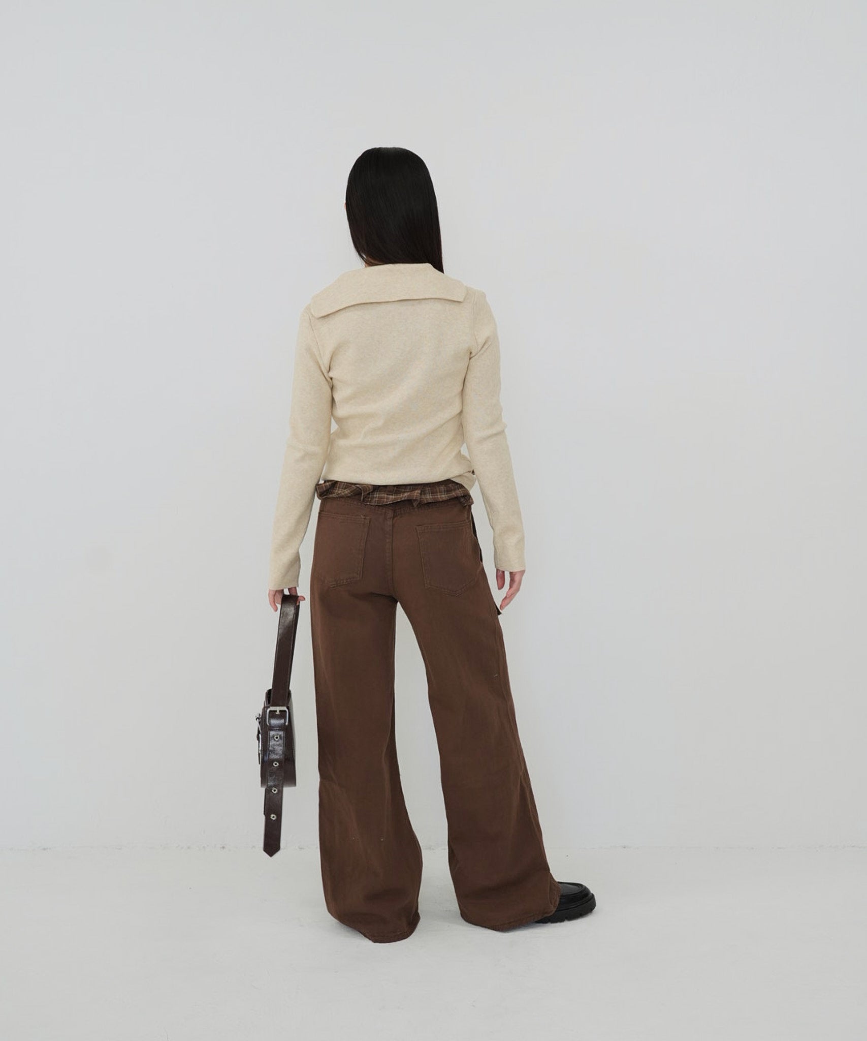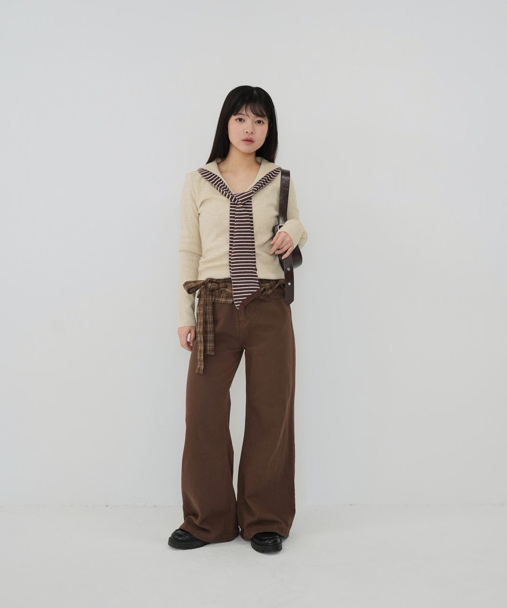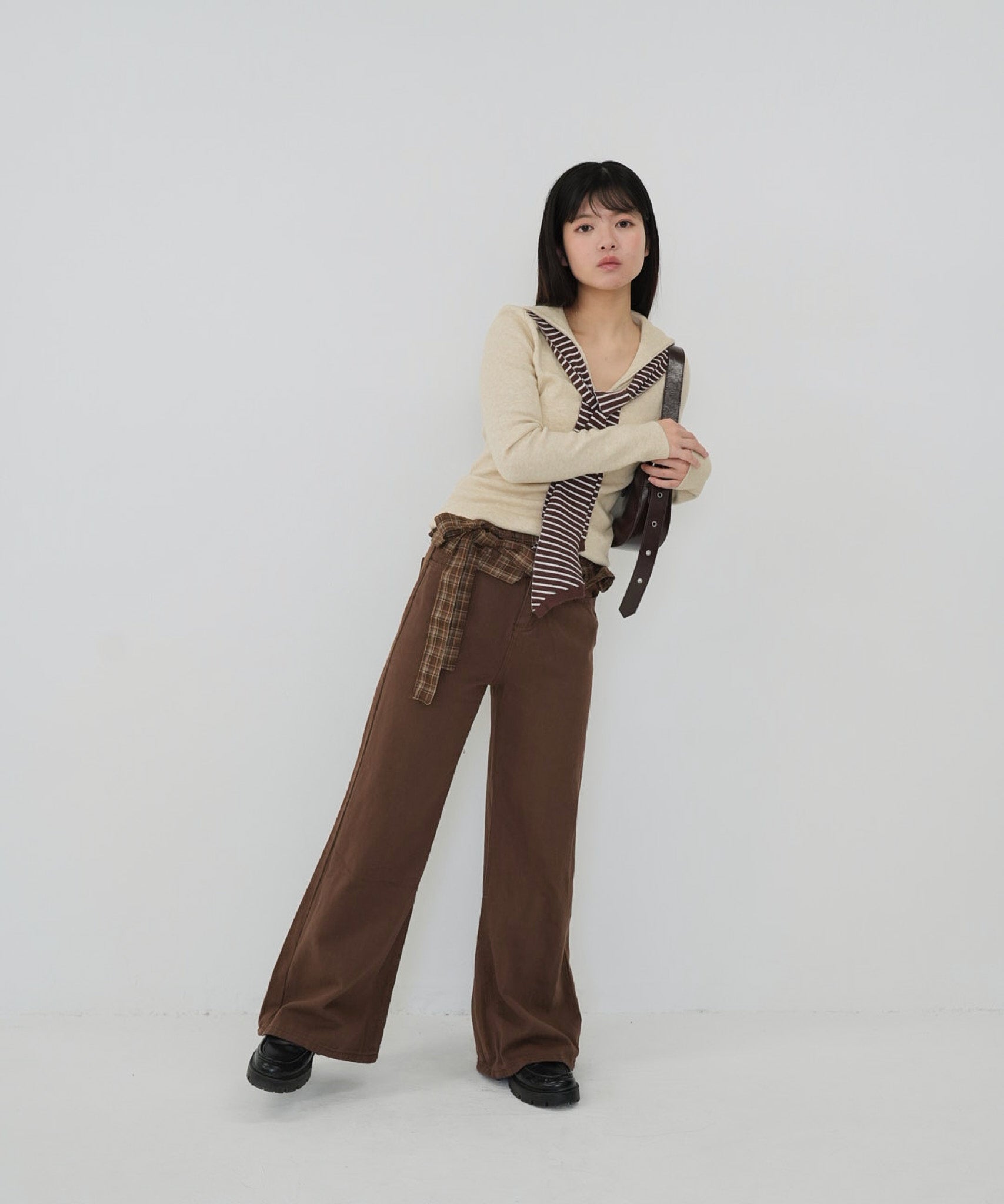 check belt wide pants
